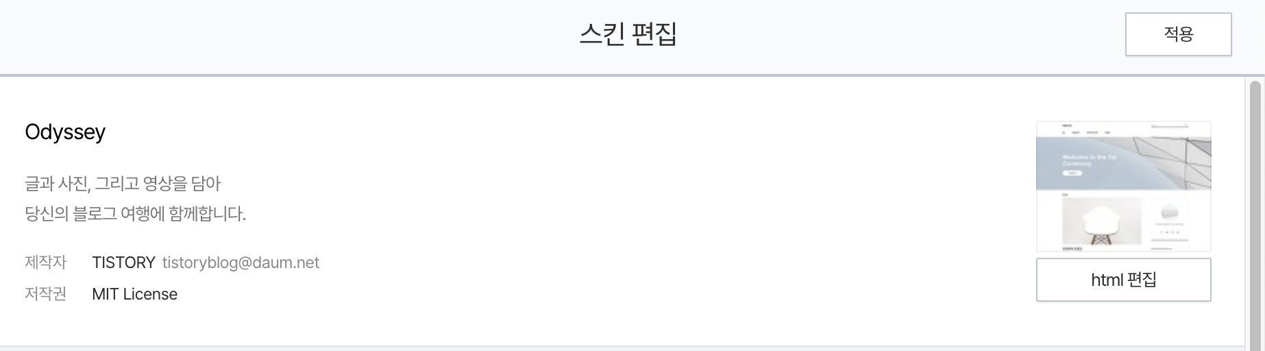 블로그 관리의 스킨 편집에 들어가서, html 편집을 눌러줍니다.